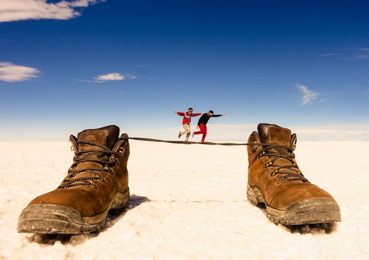 دو نفر بر روی بند کفشهای یک غول در حال حفظ تعادلشان هستند! خیلی هم حرفهای به نظر میرسند! باز هم عکاسی از نوع پرسپکتیو مصنوعی، عکسی واقعا خلاقانه را رقم زده است!