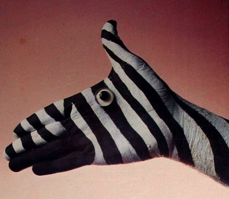 گورخری که با رنگهای سیاه و سفید در یک دست رنگآمیزی شده است.