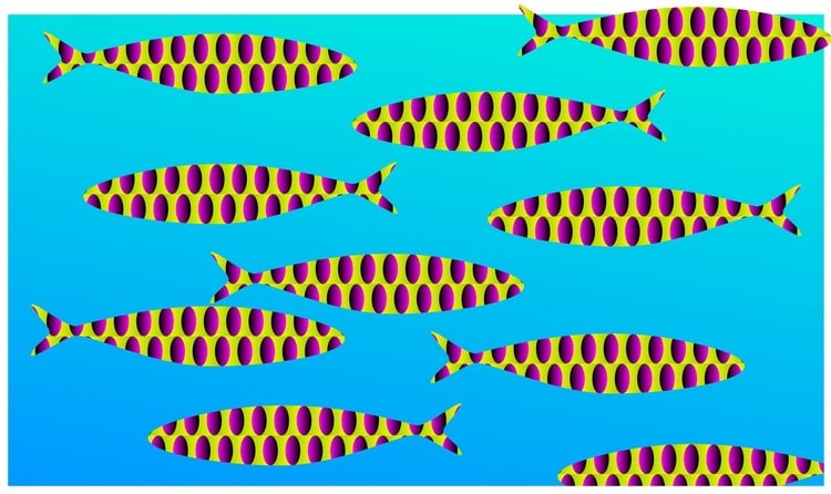 به نقاشی بالا نگاه کنید. با وجودی که این یک نقاشی متحرک نیست، اما به نظر این ماهیها کمی حرکت میکنند! مخصوصاً وقتی که نگاهتان را از روی یک ماهی، به ماهی دیگری تغییر دهید.