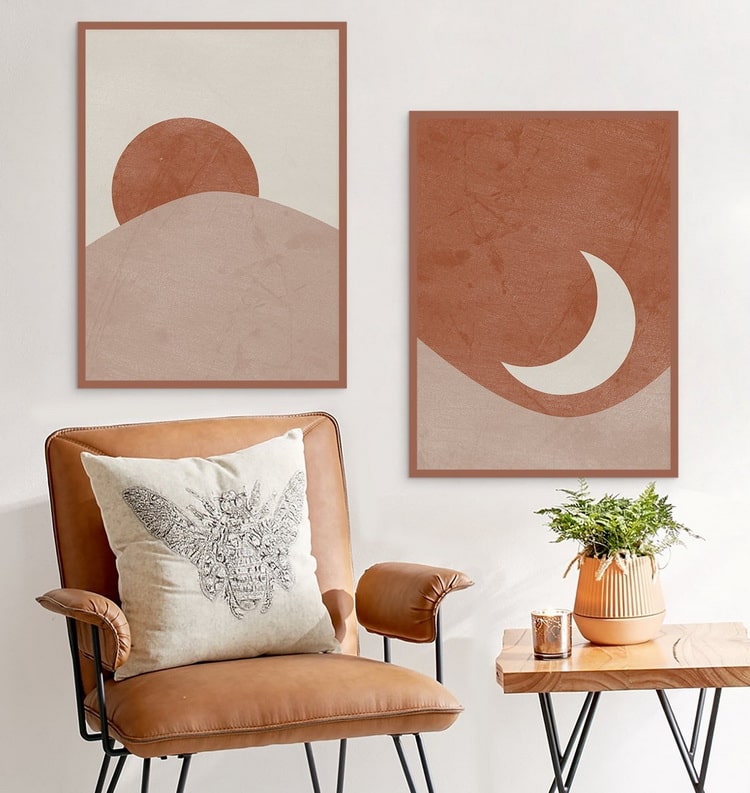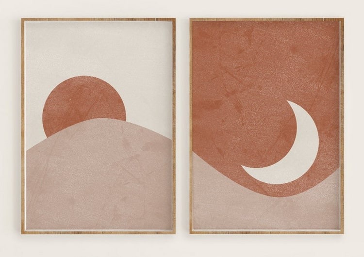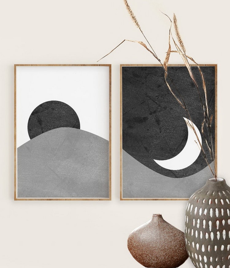 هر کدام از ما سلیقههای گوناگونی برای دکوراسیون و تزیین خانههایمان داریم. این سلیقههای متفاوت، در تابلوهایی که بر روی دیوار نصب میکنیم به راحتی نمایان میشود. این روزها بسیار افراد هنرن مدرن مینیمالیستی را ترجیح میدهند. در اینجا تصویر دو تابلوی زیبا و بسیار ساده و مینیمال را میبینیم. انگار دو پنجره بر روی دیوار وجود دارد و همزمان از طریق آنها ماه و خورشید قابل رؤیت هستند. آیا شما هم اینگونه کارهای هنری را میپسندید؟ این تابلوها از لحاظ رنگبندی و اجزاء (اِلِمانها) طوری طراحی شدهاند که بتوانند بصورت مجموعهای (سِت) استفاده شوند. البته بعضی افراد هم کلا نسخههای سیاه و سفید (در واقع خاکستری) را به موارد رنگی آنها ترجیح میدهند و سبک بدون رنگ را میپسندند. در اینجا همین طرح ماه و خورشید را که در بالا دیدید، بصورت خاکستری مشاهده میکنید. شما کدامیک را بیشتر میپسندید؟