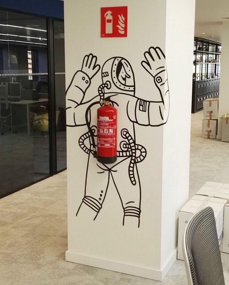 روی یک ستون، تصویر یک غواص را میبینید که کپسولی بر پشتش دارد و آماده شیرجه زدن داخل آب است. ولی کمی صبر کنید! کپسول که به پشتش است انگار یک کپسول آتشنشانی است نه یک کپسول اکسیژن!!