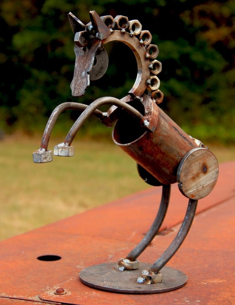 شاید کمی زُمُخت و نخراشیده به نظر برسد ولی واقعاً میتوان با کمی خلاقیت از چیزهایی تا این حد ساده و بعضاً دور ریختنی، یک چنین اثر جالبی بوجود آورد. فقط باید تعدادی لوله، مهره، مفتول و اینجور چیزها در اختیارتان باشد و البته ابزارهایی برای بریدن و جوش دادن!