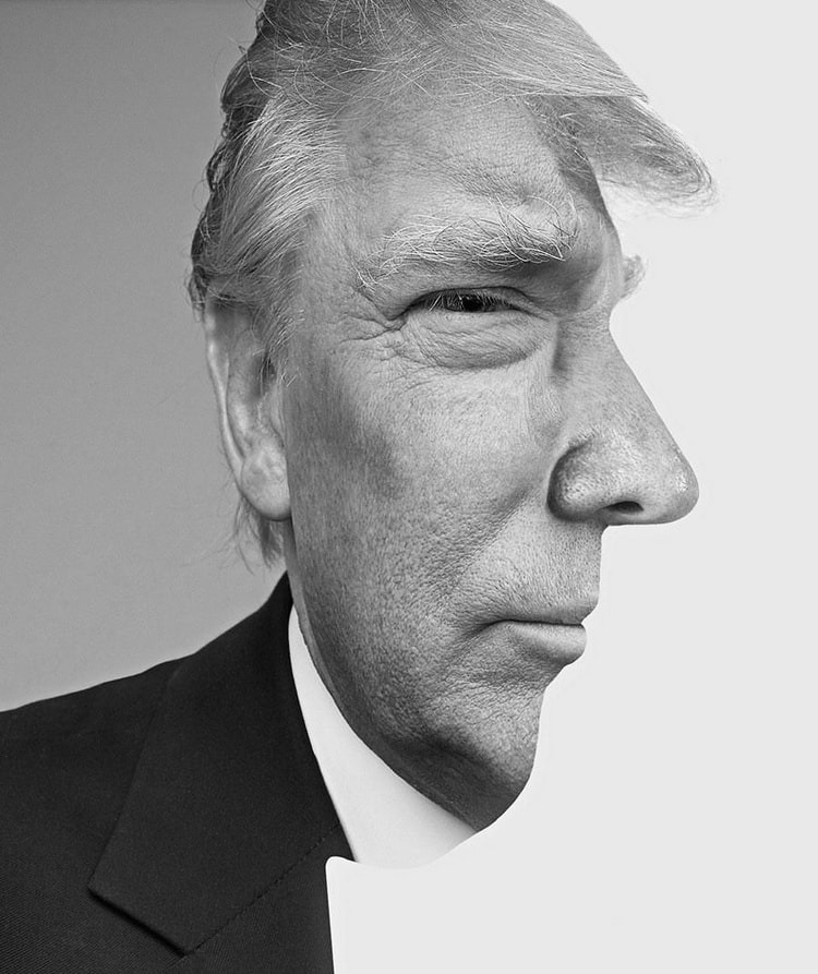 در اینجا تصویری از دونالد ترامپ، رئیس جمهور آمریکا مشاهده میکنید. آنچه مشاهده میکنید آیا نیمرخ ترامپ است یا بخشی از تصویر پرتره اوست که از روبرو میبینید؟