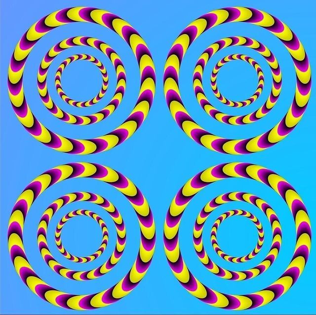به این تصویر نگاه گنید. شش دایره با تِم زرد و بنفش میبینید. البته کمی شبیه مارپیچ هم به نظر میرسند! همینکه به آنها نگاه کنید شروع به چرخیدن میکنند. مخصوصا وقتی که نگاهتان را از روی یکی از این دایرهها به سمت دیگری معطوف کنید.