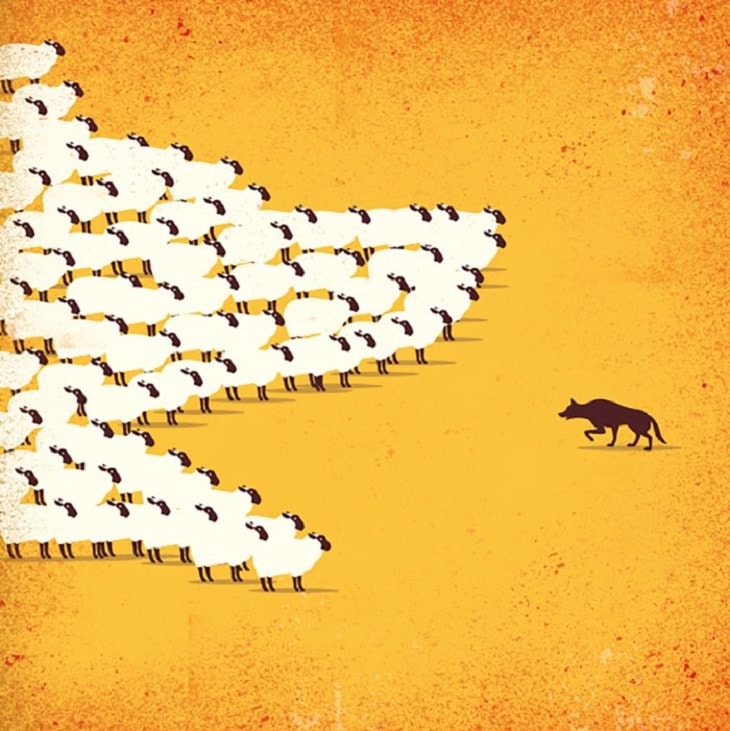 گلهای گوسفند در مقابل یک گرگ! هر کدامشان به تنهایی میتواند یک لقمه چرب و نرم برای جناب گرگ باشد، اما... بله اگر با هم متحد شوند دیگر گرگ جرأت نزدیک شدن به آنها را هم نخواهد داشت.