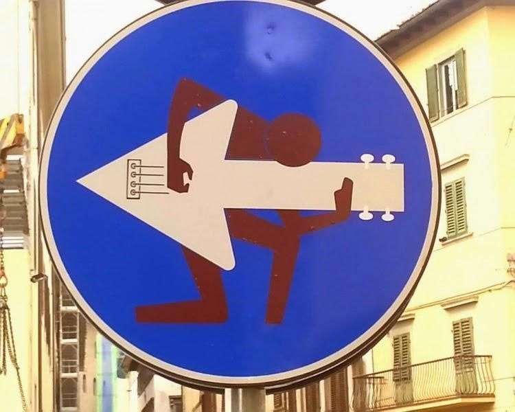 وقتی یک هنرمند خلاق تصمیم میگیرید یک شوخی مختصری با علائم راهنمایی و رانندگی داشته باشد! گیتاریست و علامت «راه یکطرفه» امیدواریم این اثر خلاقانه باعث حواسپرتی رانندهها نشود!