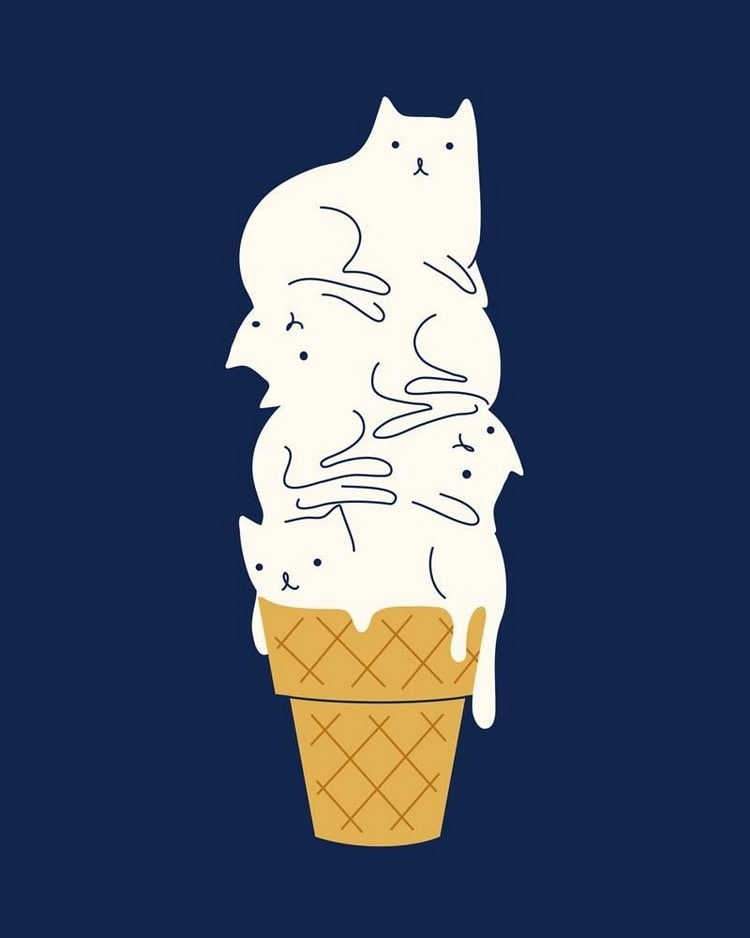 چهار تا گربه داریم که به نظر کمی گرمشان شده. همزمان به نظر میرسد که اینها بخشی از یک بستی وانیلی در حال ذوب شدن هم هستند!