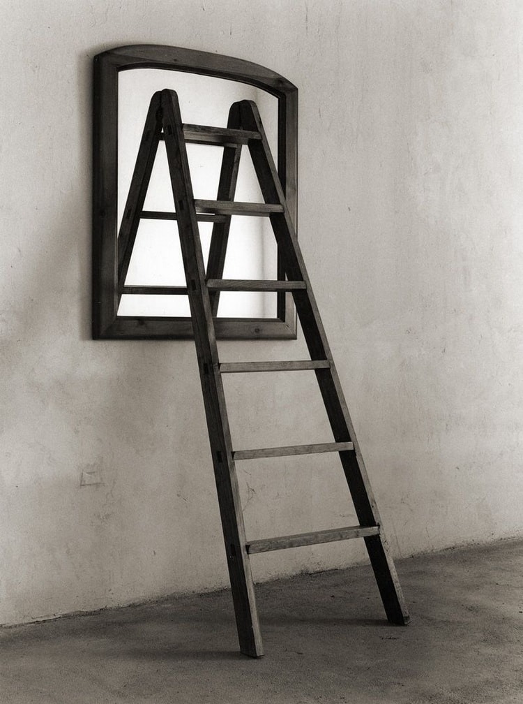 یک نردبان در چارچوب یک پنجره میبینید یا فقط یک نردبان که به یک آینه تکیه داده شده است؟! عکسی میبینید از آثار عکاس خلاق اسپانیایی، «خوزه ماریا رودریگز مادوز»۱ که به «کما مادوز» (Chema Madoz) نیز مشهور است. عکسهای او تقریبا همیشه سیاه و سفید هستند. آثار مادوز شامل یک عنصر غافلگیری است که دو شیی یا مفهوم نامربوط که حداقل دارای یک ویژگی بصری مشابه هستند را با هم درمیآویزد و یک توهم بصری بوجود میآورد. کِما مادوز متولد سال ۱۹۵۸ است و تاریخ هنر را در دانشگاه کمپلوتنسه۲ مادرید تحصیل کرد و همزمان دورههای عکاسی را میگذراند. او اولین نمایشگاه خود را در سال ۱۹۸۳ برپا کرد و تا به امروز نمایشگاههای متعددی نیز برگزار کرده، و برنده جوایز مختلف بینالمللی نیز شده است. با نگاه کردن به کارهای او، تقریبا زمزمه ای از مادوز به گوش میرسد که میگوید: همه چیز آن چیزی نیست که به نظر میرسد!