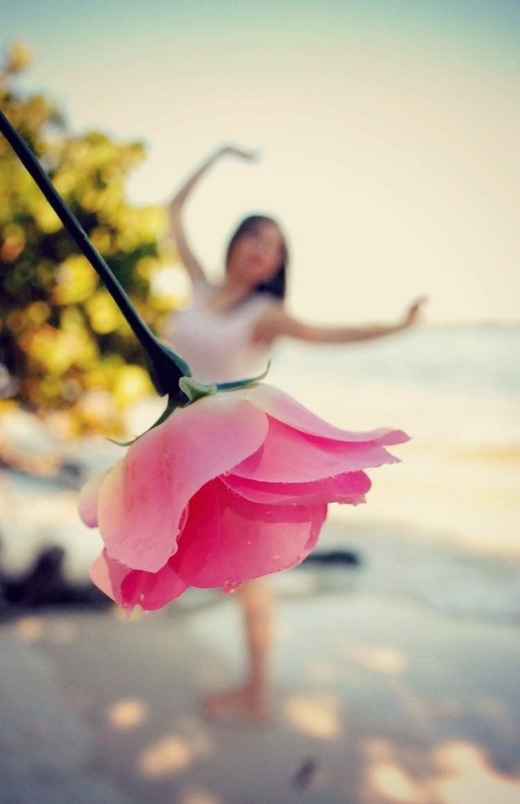 در این تصویر دختری را با یک دامن قشنگ صورتی میبینید! در نگاه اول به نظر میرسد دامن این دختر از گل است اما خیلی زود، ساقهی گل، همه چیز را مشخص میکند :) برای ثبت این عکس زیبا در حالت پرسپکتیو مصنوعی، دوربین در زاویه کاملاً مناسبی قرار گرفته،