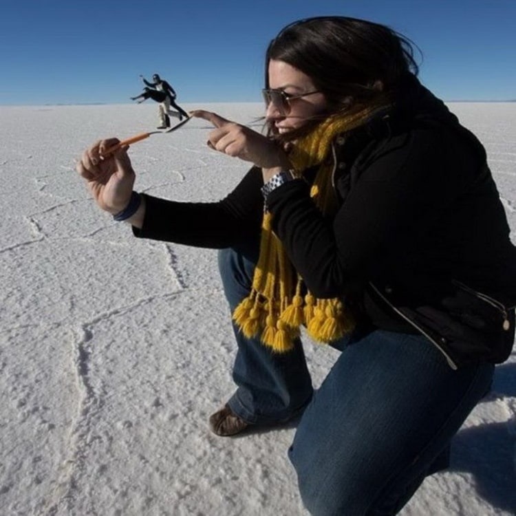 به نظر میرسد که در یک دشت پهناور نمکی، یک غول میخواهد دو موجود کوچک را با قاشقی که در دست دارد، به دوردستها پرتاب کند! البته به نظر همین الان هم این موجودات کوچک تعادلشان را بر روی قاشق، از دست دادهاند.