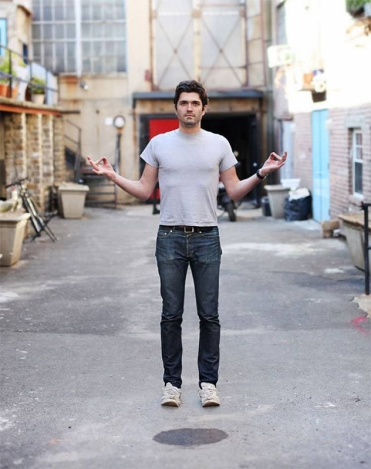 در نگاه اول، وقتی به کلیت تصویر نگاه میکنیم، به نظر میرسد که این مرد با قدرت تمرکز ذهنی، توانسته به نیروی جاذبه زمین غلبه پیدا کند و خود را از سطح زمین جدا کند! اما کمی که دقیقتر نگاه کنیم متوجه میشویم که تنها یک لکه بر روی زمین وجود دارد و این مرد با کمی فاصله از آن، ایستاده است و ذهنمان دچار فریب میشود و تصور میکند که مرد از روی سطح زمین، بلند شده است.