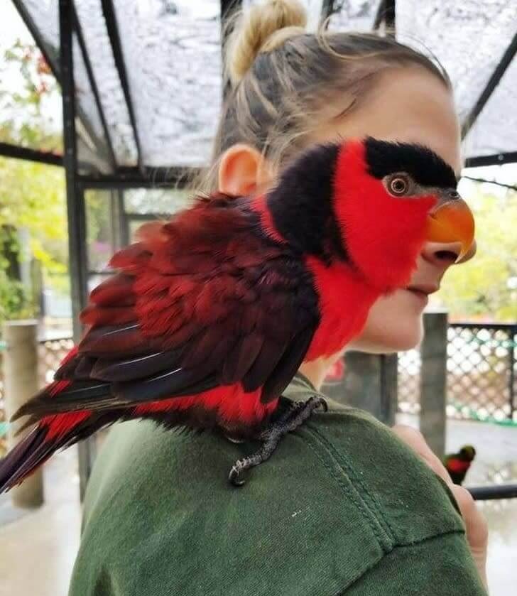 یک طوطی و صاحبش را میبینید. زاویه دوربین به شکلی است که به نظر میرسد چشم طوطی در جای چشم صاحبش قرار دارد . نوک طوطی هم با دماغ صاحبش، ادغام شده است! اولین برداشت شما از این عکس چیست؟