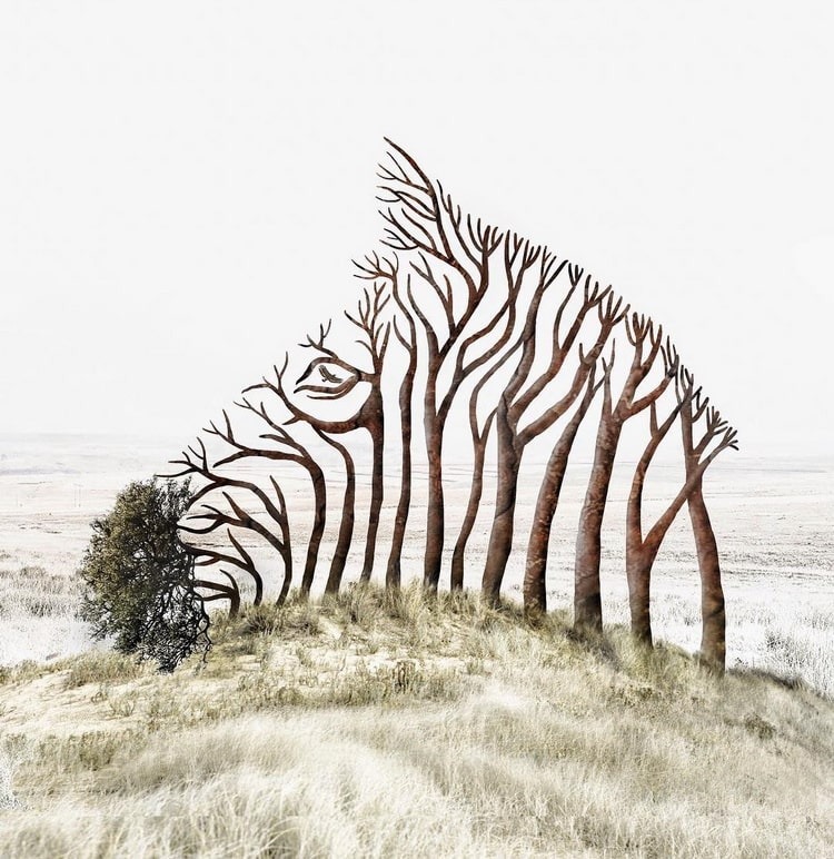 در یک دشت، تعدادی درخت میبینیم و البته اگر دقت کنیم، یک عقاب هم در حال پرواز است. مجموع همه اینها، صورت یک گورخر را نمایان میسازد. شما در نگاه اول کدامشان را دیدید؟ این نقاشی زیبا از آثار هنرمند پرتغالی، لوئیزا آزِودو (Luisa Azevedo) است.