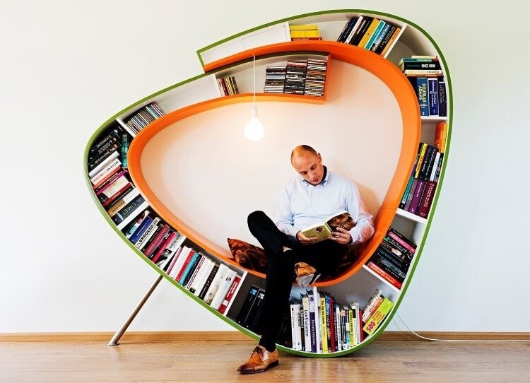اگر شما هم جزو افراد کتابخوان هستید، میدانید که داشتن کتابخانه چقدر مهم و حیاتی است. در اینجا یک کتابخانه خلاقانه و دمدستی و کاملاً کاربردی را میبینید که به مدل «خورۀ کتاب» هم معروف است. شما به راحتی میتوانید روی این کتابخوانه بنشینید یا حتی دراز بکشید. در بالای این کتابخانه، چراغ مطالعه هم دارید و با تاریکتر شدن هوا میتوانید از آن استفاده کنید.
