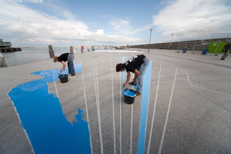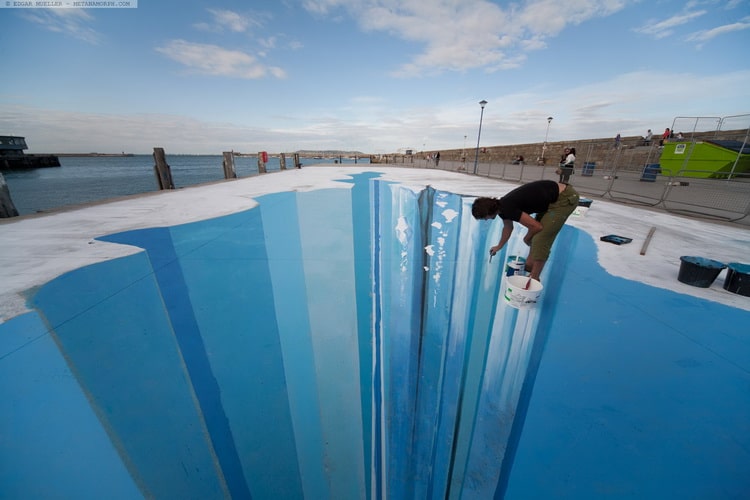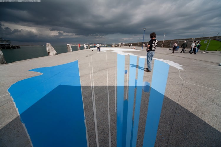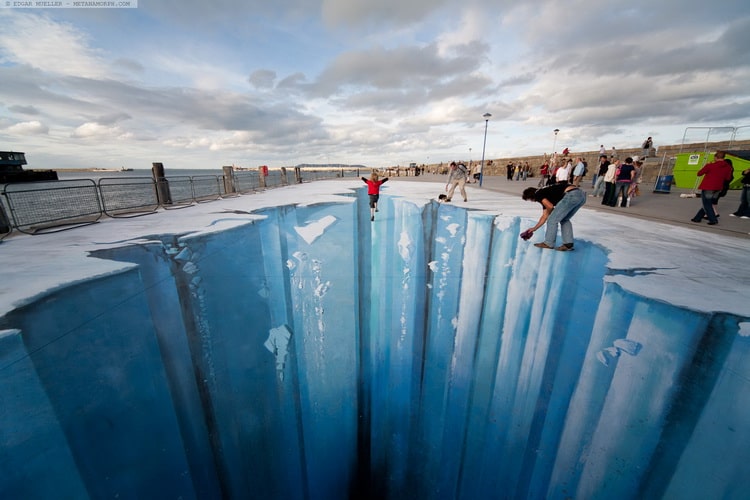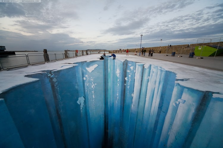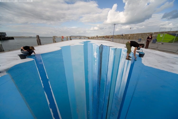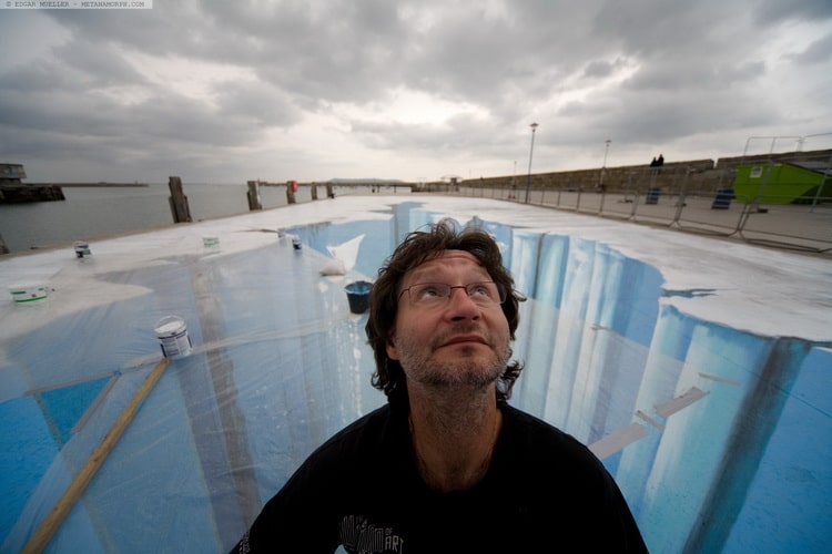 در ماه آگوست سال ۲۰۰۸ نمایشگاهی در شهر دانلیری۱ ایرلند با عنوان «فستیوال فرهنگهای جهان»۲ برگزار شد. هنرمند مشهور آلمانی «ادگار مولر» (Edgar Müller) نیز به آنجا رفته بود تا یکی از هنرهای خیابانی سهبعدیاش را در سایز بزرگ اجرا کند. پروژه ادگار مولر، بنام کریواس۳ و مربوط به خاطراتی دراماتیک از عصر یخبندان بود. این پروژه توسط موسسه گوته آلمان حمایت میشد. در اینجا تصاویری از اولین لحظات خلق این اثر تا زمان اتمام آن را مشاهده میکنید: