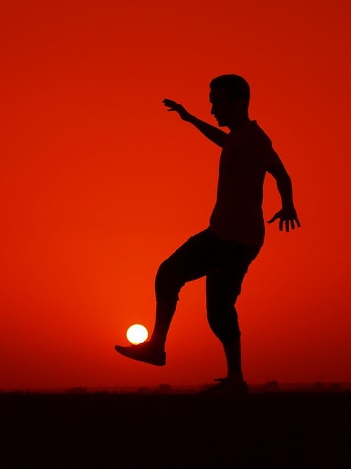 این پسر در یک غروب زیبا، مشغول روپایی زدن با خورشید است! بله، باز هم زاویه مناسب عکاسی و خلق یک خطای دید پرسپکتیو مصنوعی زیبای دیگر.
