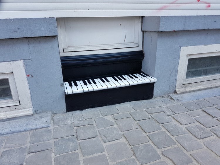 پله جلوی یک خانه به صورت یک پیانو رنگآمیزی شده است. البته به نظر میرسد رفت و آمدی از در بالای پله انجام نمیشود، شاید به این ترتیب تمیزتر هم باقی میماند!