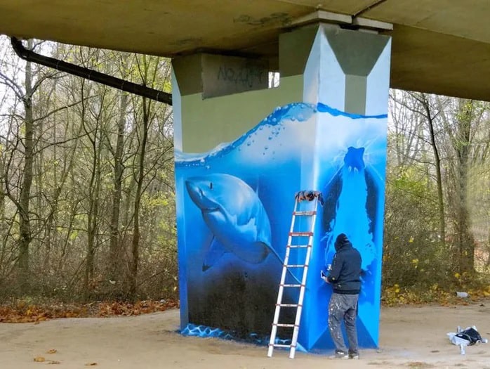 اثری خلاقانه از «بارت اسمیت» (Bart Smeets) هنرمند بلژیکی که به «اسمِیت» (Smates) هم معروف است. این اثر بر روی پایه یک پل در شهر اندِرلِخت۱ بلژیک کشیده شده است. این اثر به قدری طبیعی به نظر میرسد که اگر از کنار آن رد شوید برای لحظاتی هم که شده، ترس به دلتان راه خواهد یافت و سعی میکنید هر چه سریعتر محل را ترک کنید!