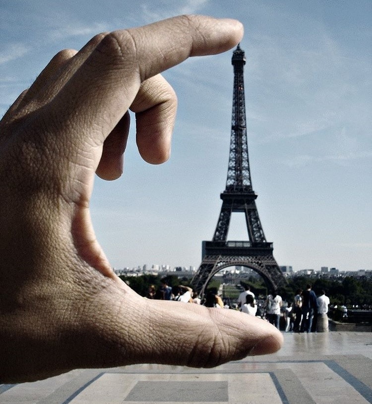 یکی از پرتکرارترین عکاسیهای خلاقانهای که از برج ایفل انجام میشود، اینگونه خطاهای پرسپکتیو مصنوعی است که برج ایفل را بسیار کوچک نشان میدهد. کافیست به عنوان عکاس، فاصله و زاویه مناسب را پیدا کنید! البته اگر در اروپا باشید بهغیر از برج ایفل، گزینهای دیگر به نام برج پیزا را هم برای عکاسیهای خلاقانه پیش رو خواهید داشت!