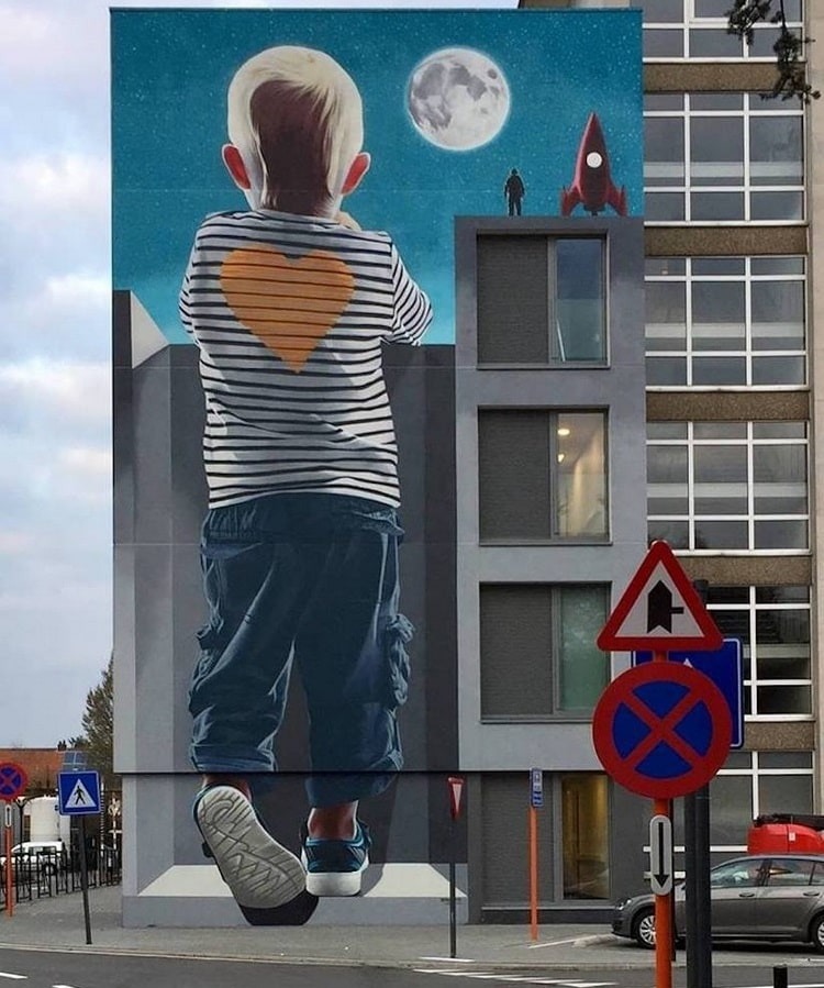 اثری خلاقانه از «بارت اسمیت» (Bart Smeets) هنرمند بلژیکی که به «اسمِیت» (Smates) هم معروف است. آنچه میبینید از نمایشهای رنگارنگ او به سبک عکس-واقعگرایانه (photo-realistic) است. این نقاشی در نمای بیمارستان Ziekenhuis در شهر ژل (Geel) در بلژیک کشیده شده است. کار موردنظر از ۲۰ متر هم بالاتر میرود و هم اکنون چشمنواز بیماران و بازدیدکنندگان است. در اینجا برخی از مراحلِ به تصویر کشیدنِ این اثر را مشاهده میکنید: