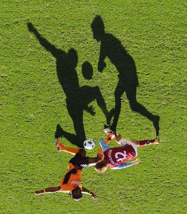 این دو سایه، مشغول بازی هستند و به نظر هم کاملا حرفه هستند! وضوح بازی بین این دو سایه، بیشتر از بازی خود دو فوتبالیست است.