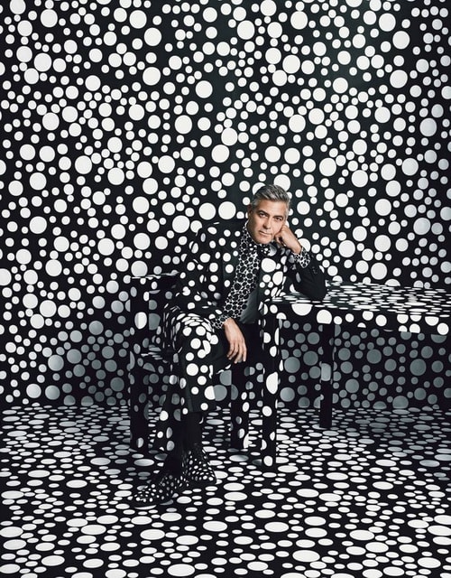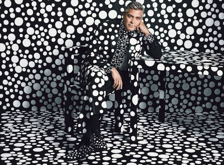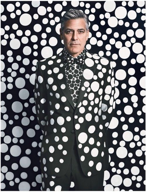 حضور سلبریتیها در عرصه تبلیغات، موضوعی کاملاً معمول و مرسوم است. اما همزمانی این حضور با ایدههای خلاقانه، ارزش حضور آنها را دوچندان میکند. در اینجا بازیگر سرشناس هالیوود، «جرج کلونی» در شماره دسامبر ۲۰۱۳ مجله «دابلیو مگزین» (WMagazine) اینگونه در هماهنگی با پسزمینه ظاهر شده است. ترکیب طرح لباس او (برند «جورجو آرمانی»۱) و پسزمینه سیاه و سفید، یک «استتار» بسیار زیبا و هُنری را رقم زده است.