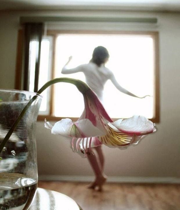 از آنجاکه دوربین به گل نزدیکتر است تا به دختر، و اینکه دوربین در زاویه کاملاً مناسبی قرار گرفته، در نگاه اول به نظر میرسد دامن این دختر از گل است اما خیلی زود، ساقهی گل، همه چیز را مشخص میکند :)