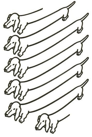تعدادی سگ پاکوتاه میبینید. البته اگر بخواهید سمت چپ و راست تصویر را در ذهنتان به هم پیوند دهید دچار یک تناقض خواهید شد. در پایین، یک تصویر متحرک میبینید که سعی شده همیشه تعداد سر و ته سگها در آن یکسان باشد و میزان تناقض ذهنی، اندکی کاهش یابد!