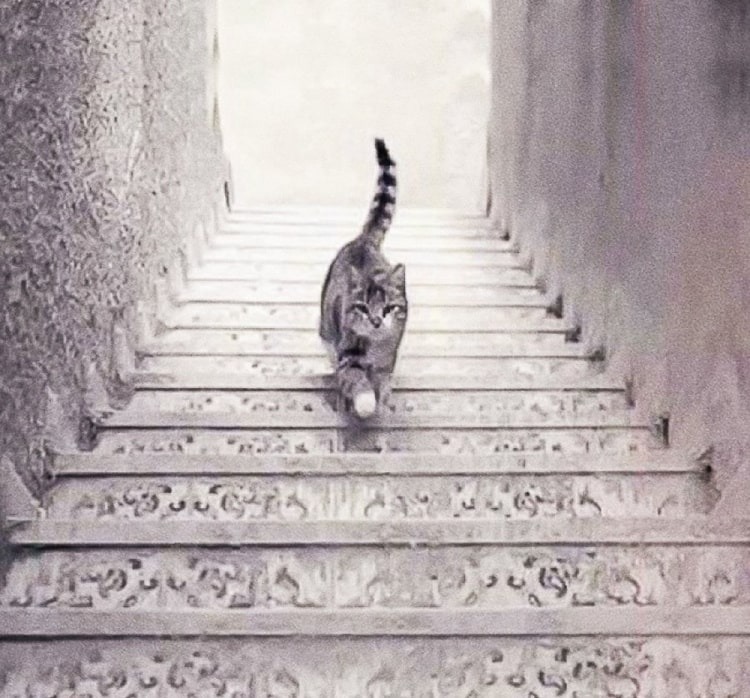 این گربه در حال پایین آمدن از پلههاست یا دارد از آنها بالا میرود؟! در هر دو صورت به نظر میرسد که به سمت شما میآید.